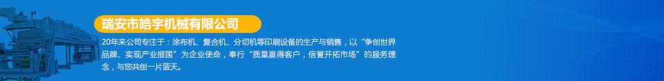 瑞安市皓宇機械有限公司是瑞安一家私營責任有限公司,注冊資金200萬,員工40余人,是具有獨立法人地位,專業(yè)生產(chǎn)定做各種非標準涂布機、復合機、印刷機、分切機、壓膜機等機械設備的制造廠。公司的機器主要用于生產(chǎn)保護膜、膠帶、雙面膠、不干膠、相紙、油畫布、汽車防爆膜、熱轉印、燙金膜、離型膜、離型紙、軟包裝印刷、軟包裝復合、軟包裝分切等各種產(chǎn)品...  [詳細]